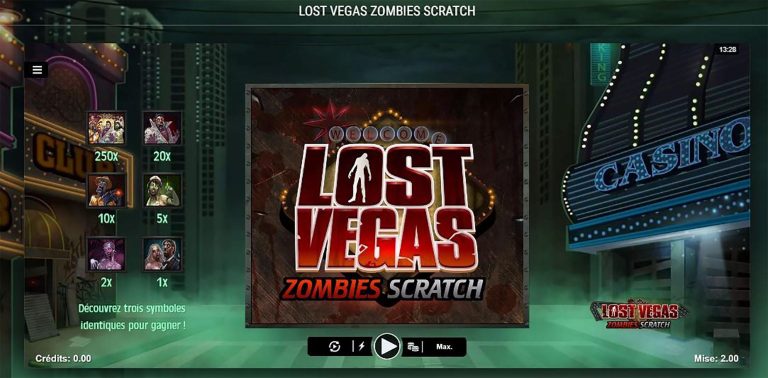A propos de Lost Vegas Zombies Scratch Lost Vegas Zombies Scratch est une carte à gratter avec 9 cases. Découvrez trois symboles identiques pour gagner. Règles du jeu Découvrez trois symboles…