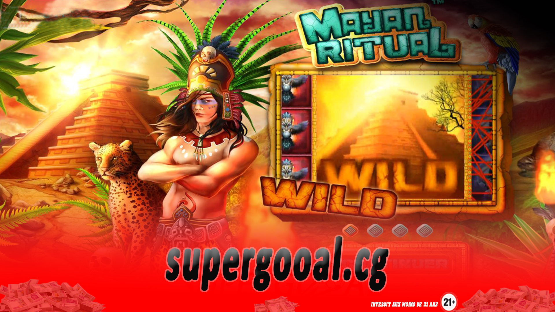 Tous les symboles dans Mayan Ritual  apparaîtront en version géante qui peut être un bloc de 2×2 ou 3×3. Ces symboles peuvent apparaître entièrement ou partiellement sur une bobine selon la façon dont elle atterrit. Ceux-ci apparaissent également dans la fonction Free Spins, mais les seuls symboles qui peuvent assumer le rôle de symbole géant sont Bonus, Wild et les 4 symboles les plus rémunérateurs. Giant Wild est un bloc 3×3 et peut apparaître sur 3 rouleaux centraux uniquement pendant les tours gratuits. Les symboles Wild remplacent tous les symboles à l’exception du symbole Giant Bonus. Giant Bonus apparaît également sous forme de bloc 3×3 et peut apparaître n’importe où sur les rouleaux pendant le jeu de base et la fonction Free Spins. Si tout ou partie du symbole Giant Bonus apparaît sur les rouleaux après un tour, le symbole se transformera en une machine à sous bonus. Supergooal ne cesse de vous offrir, sans aucune contrainte, les jeux et les promotions. Vous avez la possibilité de rejoindre les chanceux millionnaires grâce à votre compte personnel ! Inscrivez-vous donc dès à présent sur notre site et profitez sans restriction de plaisir, un plaisir responsable !