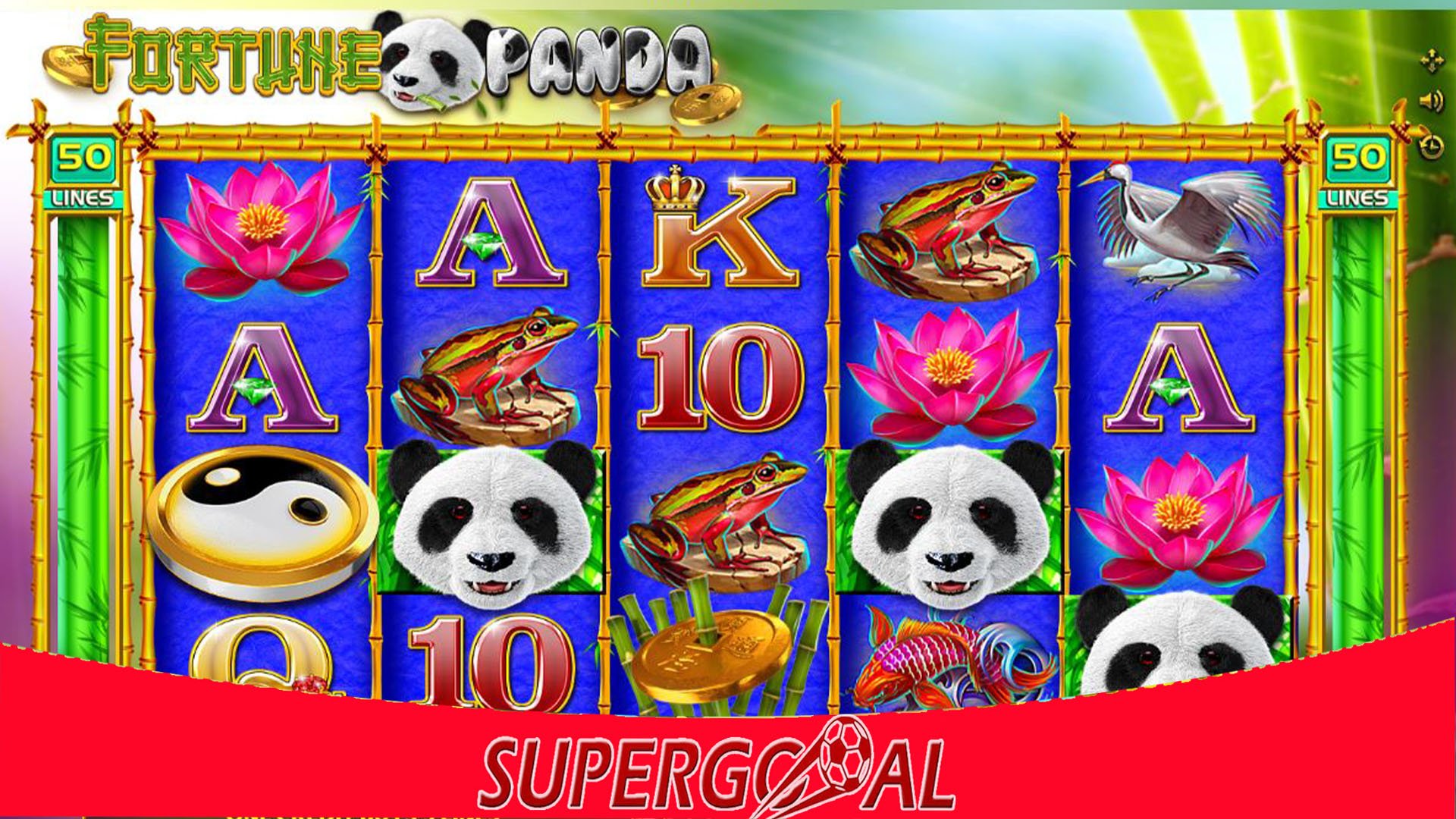 Panda Panda vous invite à voyager dans les régions les plus reculées de Chine, au sein d’un décor luxuriant et recouvert de fleurs roses, d’une cascade et de nénuphars où se cache cet animal dans son milieu naturel. Le jeu se présente sous la forme de 5 rouleaux à 3 rangées et 243 moyens d’activer un gain. Supergooal sans relâche, met à votre disposition et sans contrainte aucune, les jeux et promotions. Vous pouvez faire partie des heureux millionnaires à travers votre compte personnel ! Inscrivez-vous donc sur notre site maintenant et faites-vous sans limite du plaisir, un plaisir responsable !