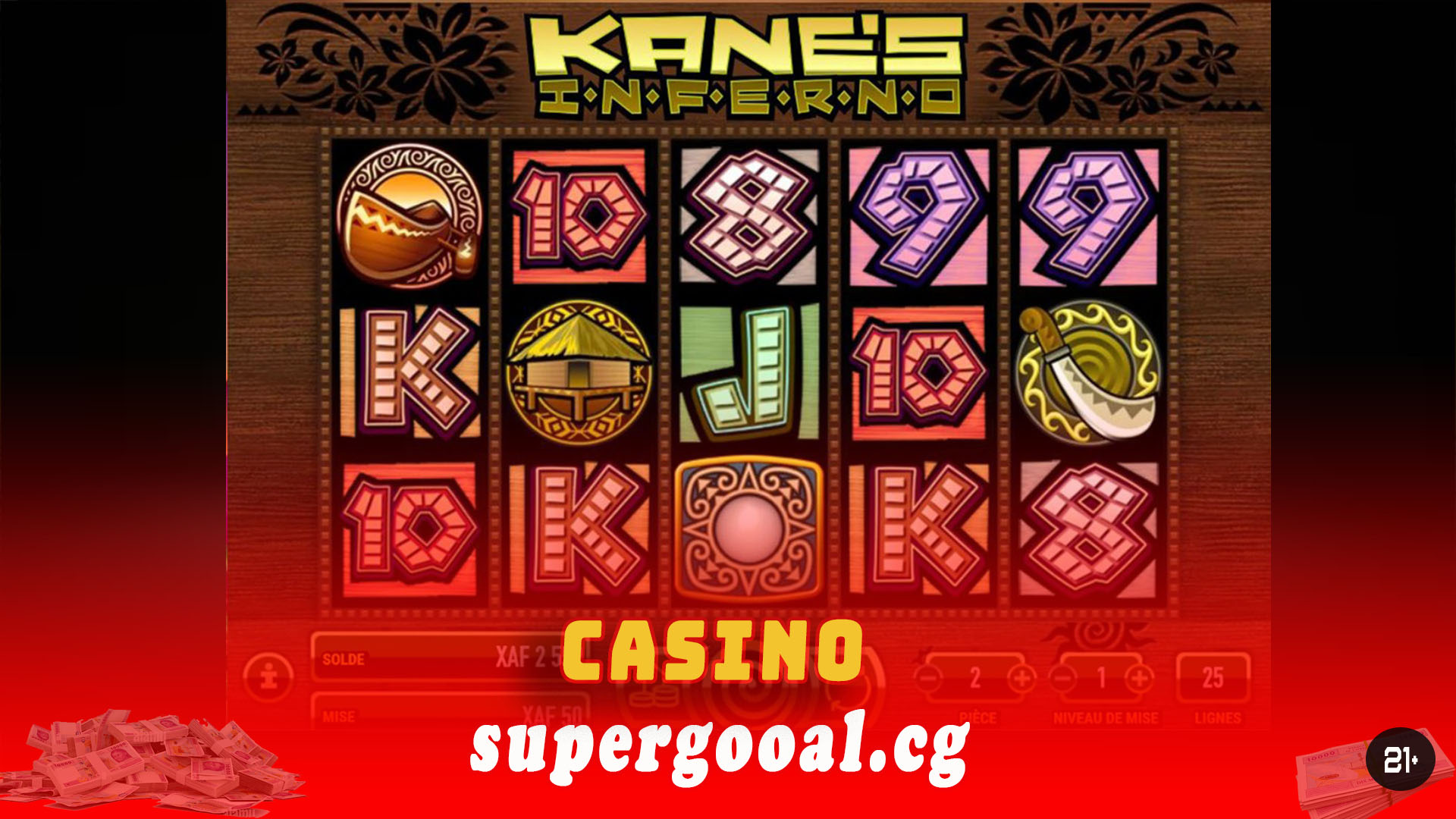 Les rouleaux sont également fantastiques, car comme Kane est un totem Tiki, ils se concentrent uniquement sur le thème du tiki. Le cadre des bobines est un bois de noyer qui a reçu des sculptures Tiki incroyablement détaillées. Cela donne au jeu un aspect très authentique, car vous pouvez y voir des fleurs sculptées, des motifs sculptés et des chiffres sculptés. Ces numéros se trouvent à gauche et à droite des rouleaux, qui correspondent aux options de lignes de paiement du jeu. Kane’s Inferno est une machine à sous à 5 rouleaux avec 25 lignes de paiement, mais ce n’est pas vraiment ce qui la rend unique. Cette machine à sous comporte de nombreux moments au cours desquels le feu flambera sur l’écran alors que Kane le Tiki est satisfait de votre performance. Lorsque vous remportez une très grosse victoire, le tiki occupera une grande partie de l’écran et s’enflammera, vous montrant le feu avec lequel vous jouez. Différents symboles s’allumeront également lorsque vous les poserez sur une bobine gagnante. En parlant de gains, il existe de nombreuses façons de gagner sur cette machine à sous de casino. Supergooal ne cesse de vous offrir, sans aucune contrainte, les jeux et les promotions. Vous avez la possibilité de rejoindre les chanceux millionnaires grâce à votre compte personnel ! Inscrivez-vous donc dès à présent sur notre site et profitez sans restriction de plaisir, un plaisir responsable !