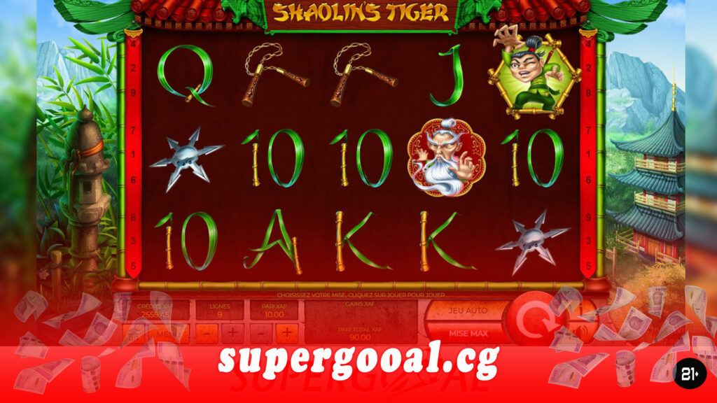 La machine à sous Shaolin’s Tiger est une machine à sous à 5 rouleaux et 9 lignes de paiement qui permet aux joueurs de contrôler leurs mises à partir d’aussi peu que 0,45 par tour. Bet max vous permettra de définir les mises au maximum et fera tourner les rouleaux automatiquement lorsque vous appuyez dessus, alors faites attention à ne pas appuyer sur cette touche si vous n’êtes pas prêt à parier le montant le plus élevé. Vous trouverez le menu du tableau des gains, l’ajusteur de ligne, l’ajusteur de mise de ligne, la mise maximale, la lecture automatique et les tours sous vos rouleaux, ainsi que votre solde, les lignes sélectionnées et la mise, ainsi que votre gain total et votre mise totale.Supergooal ne cesse de vous offrir, sans aucune contrainte, les jeux et les promotions. Vous avez la possibilité de rejoindre les chanceux millionnaires grâce à votre compte personnel ! Inscrivez-vous donc dès à présent sur notre site et profitez sans restriction de plaisir, un plaisir responsable !
