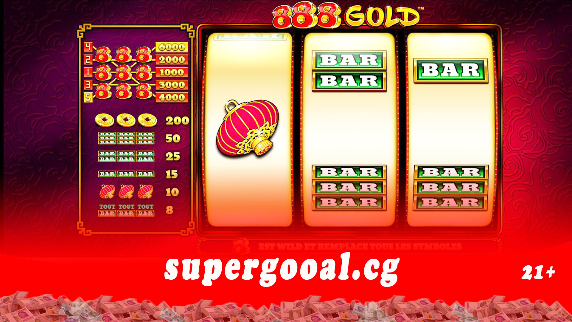 Les joueurs peuvent choisir eux-mêmes le nombre de lignes de paiement avec lesquelles ils veulent jouer dans 888 Gold, alors choisissez entre 1 et 5 lignes. Notre conseil à tous les spinners est de toujours activer le nombre maximum de lignes, simplement pour augmenter vos chances de gagner. La liste de commandes est située juste sous les rouleaux et vous n’aurez aucun problème à régler votre pari, à sélectionner le nombre de lignes avec lesquelles vous voulez jouer et à activer la lecture automatique, qui offre jusqu’à 1 000 tours automatiques. Supergooal ne cesse de vous offrir, sans aucune contrainte, les jeux et les promotions. Vous avez la possibilité de rejoindre les chanceux millionnaires grâce à votre compte personnel ! Inscrivez-vous donc dès à présent sur notre site et profitez sans restriction de plaisir, un plaisir responsable !