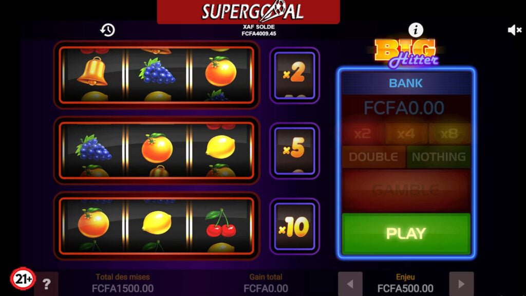 Pour gagner dans Big Hitter , vous devrez faire correspondre au moins 3 symboles identiques sur n’importe quel rouleau. Si vous gagnez un gain, un multiplicateur bonus peut être remporté s’il est spécifié dans son rouleau à droite. Si cela se produit, le multiplicateur s’illumine et tournera pour vous donner de 2 à 10 fois votre gain. Supergooal sans relâche, met à votre disposition et sans contrainte aucune, les jeux et promotions. Vous pouvez faire partie des heureux millionnaires à travers votre compte personnel ! Inscrivez-vous donc sur notre site maintenant et faites-vous sans limite du plaisir, un plaisir responsable !